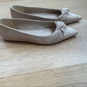 Chic cream flats with a stylish bow and a suede look. Perfect for versatile wear.