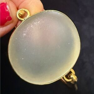 Stylish gold bracelet featuring a frosted white stone. Perfect for any occasion.