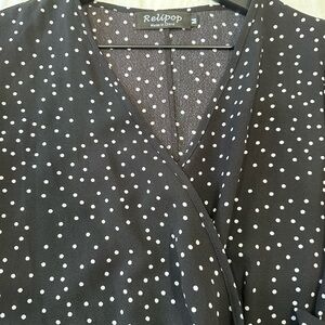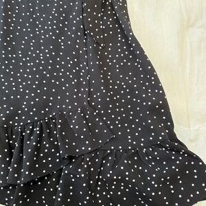 Step out in style with this chic black mini dress featuring a playful polka dot pattern. Perfect for any occasion, this dress offers a flattering fit and a touch of elegance.
