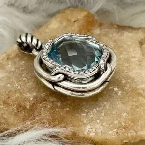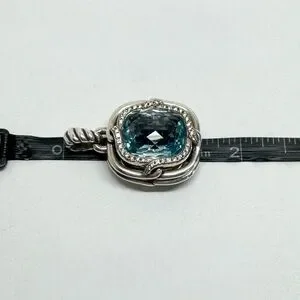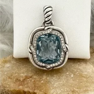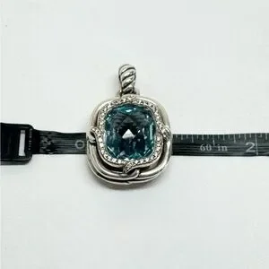 David Yurman Large Diamond Blue Topaz Labyrinth Enhancer Pendant .925