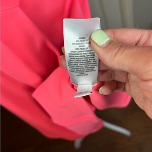 This color is very bright and vibrant- a super bright/fluorescent pinkish coral, more so than what can be captured in pictures, fabric is high quality and luxurious
