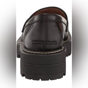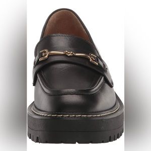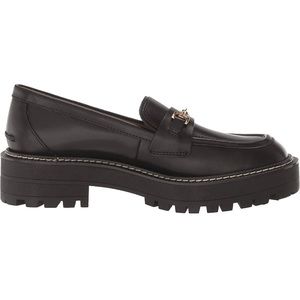 Stylish black loafers with gold buckle detail. Chunky sole for added comfort.