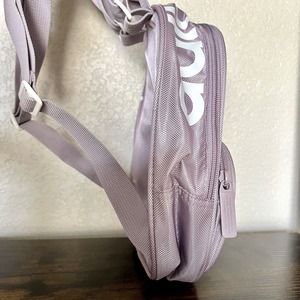 The backpack's purple color with white accents gives it an elegant look, while the signature Adidas logo adds a touch of sportiness. The backpack has a zip closure and is equipped with nylon handles and straps for easy carrying. Stay organized and look stylish on your next adventure with this Adidas Originals Santiago Mini Backpack.