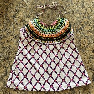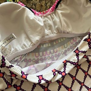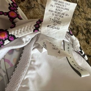 NWOT TRINA TURK Nuevo Sol Sz 4 Tankini Top White Pink Sunburst Mandala Tie Neck