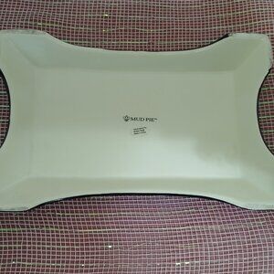 "Handcrafted for Mud Pie". Porcelain stands were made in China. These can be used to display Knick knacks, food etc. The larger measures 7.5" x 5" across the base, 1.25" tall. Display square 3.5" x 6". Smaller measures 4.75" x 6", 1.25" tall. Display square is 3.5" x 4.25". No chips or cracks.