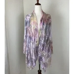 Frazzle XL Sheer Lace Cardigan Rainbow Pastel Colorful Coastal Fairy Drape Front