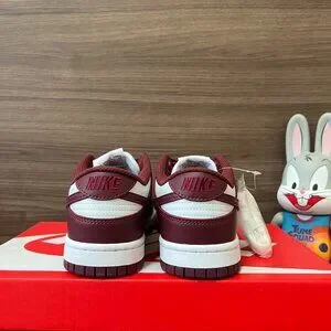 Stylish Nike athletic shoes. Maroon overlays with white base. Perfect for sports and casual wear.