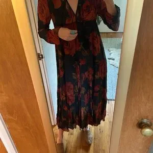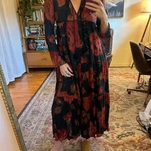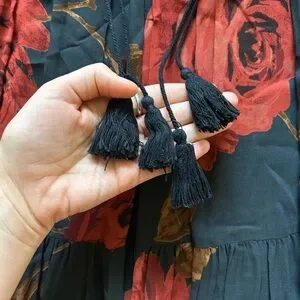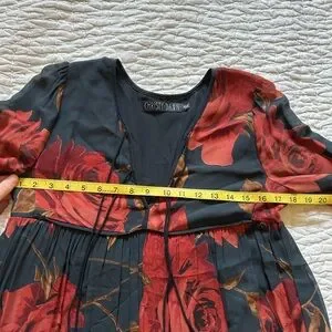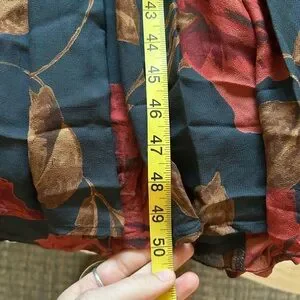 XS/S, fits me as a small. I am 5’8” for reference. Measurements in photos. This is deadstock, but I believe is a Rayon Georgette fabric. Lined. Excellent condition, but please note the little tassels have some white threads poking through, not visible when worn. Ready to pass this beautiful piece on to someone who will reach for it more than I have!