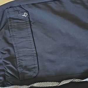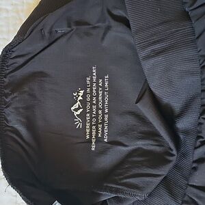 Chic black skorts with front pockets. Features a stylish drawstring and four pockets - two in the front with flaps and two in the back. Nylon and spandex make this skort ideal for active wear and outdoors adventures. Transitions perfectly well from the court to the trail to downtown!
