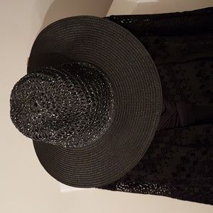 Steve Madden Sun Hat In Black. Black Rim With Black And Silver Woven Top. Brand New Never Worn. O/S Fits Most.