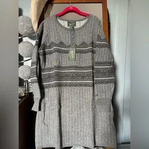 NWT Woolrich XL Fairisle Knit Henley Wool Blend Sweater Dress