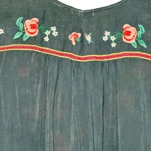 Johnny Was Floral Embroidered 3/4 Sleeve V-Neck Crinkle Gauzy Lightweight Tunic