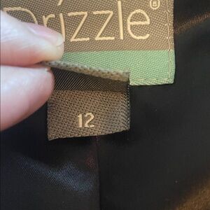 Size 12. Could fit a smaller or larger in my opinion, very forgiving. I am a medium in coats and it fits me perfectly. Velvet with satin type lining. Excellent condition. Inner and outer belt tie.