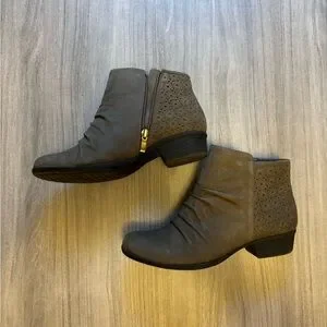 Stylish gray ankle boots. Features side zipper and textured design. Perfect for casual wear.