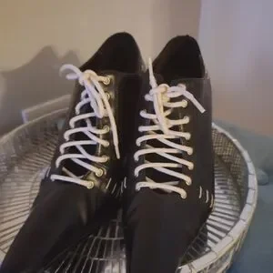 Black Ankle Boots with White Laces