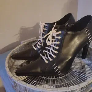 Step out in style with these sleek black ankle boots featuring contrasting white laces. Perfect for any occasion, these boots offer both comfort and elegance.