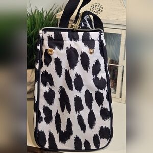 Stylish and chic, this Kate Spade lunch bag features a bold black and white leopard print. Zip top closure, snap button extender side panel, mesh interior pocket, and fully insulated. This modern leopard print lunch tote has a matching tumbler available in my closet!