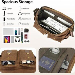 Water-resistant and Durable---Our messenger bag is made of high-density heavyweight canvas and matte leather with a waxing process for great durability and excellent water resistance, as well as smoother zippers and reinforced stitching to make damage impossible