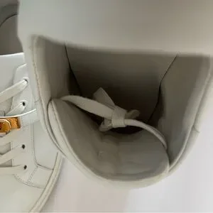 Hermes day sneaker with rose gold hardware size 38. In good used condition. Noticeable signs of wear including dust, dirt, inner and outer sole wear. I don’t have the original box or dust bags anymore. Lovely sneakers, just don’t reach for them anymore.