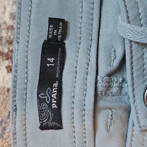 Stylish Prana halle pants in a versatile blue shade. Ideal for casual outings, hiking, casual, workout. In great condition.with one spot on back right leg shown in pics. 14