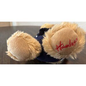 The Hamley's Store London Teddy Bear is a 10" plush stuffed animal in a British ER Policeman theme. This brown-eyed bear with a gold color is made of cotton and is a vintage piece. As part of the Hamley's franchise, this bear is a unique and adorable addition to any collection or as a special gift for someone who loves bears and British culture.