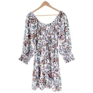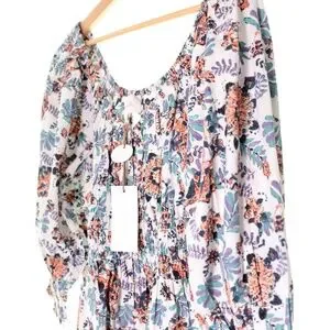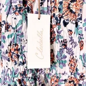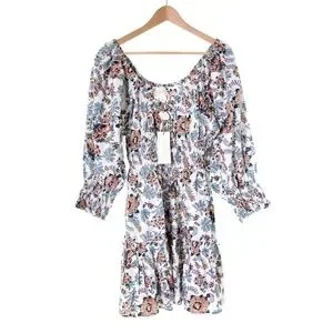 NWT Cleobella Maxine Floral Organic Cotton Scoop Neck Ruche Mini Dress Womens M