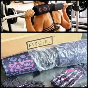 Fitgirl barbell pad and gloves set in black and pink. Perfect for weightlifting. w/ Free Gloves