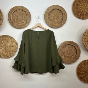 J. Crew Green Ruffle Wide Flare Sleeve Blouse Top Preppy 14 Feminine Business