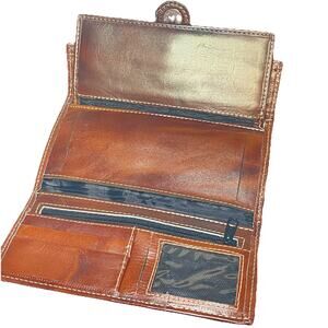 This handmade Mexican leather wallet features a beautiful raised floral pattern in brown leather, accented with a zipper and embroidered details. The trifold design offers multiple compartments for credit cards, an organizer, a photo holder, and a checkbook. The colorful and stylish wallet is perfect for women looking for a unique and functional accessory to hold their coins and cards in a fashionable way. Made in Mexico, this wallet exudes a handcrafted charm and quality craftsmanship.