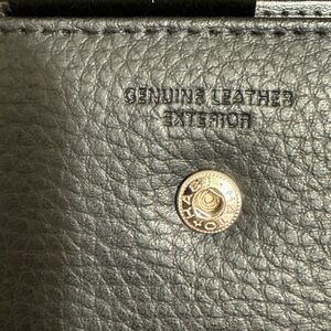 This black Buxton leather fold over wallet is a stylish addition to any woman's accessories collection. It features a high quality Hasi Hato Japanese snap, a coin pouch, and a picture organizer. The wallet is made of high-quality leather, making it durable and long-lasting. Its compact size of 7.5 inches in length and 4 inches in width makes it easy to carry around, while the folding design allows for easy access to your essentials. The wallet is perfect for those who appreciate the beauty and simplicity of leather accessories.