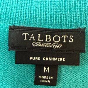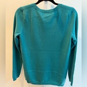 Chic and comfortable aqua blue sweater by Talbots. Ideal for layering or wearing alone. Soft. Cashmere. No hole. No spot. Non smoking home. Box C11.