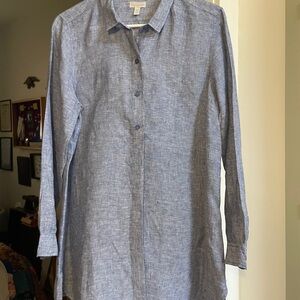 Chambray blue tunic-length shirt by Garnet Hill.
