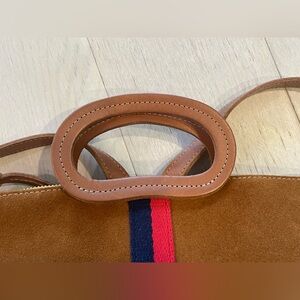 Clare V Marcelle Backpack in Camel Suede w/ Navy & Red Stripes