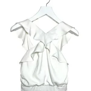 BHLDN MONIQUE LHUILLIER White Bissel Jumpsuit w/ Ruffle Halter Bodice - Size 8