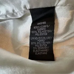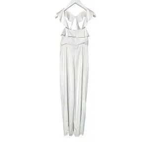 White Crepe (100% polyester) jumpsuit with cutaway halter bodice.