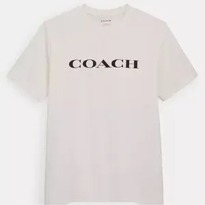 Stylish white tee featuring bold black Coach logo. Perfect for casual wear. Excellent Used Condition