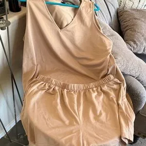 Soft and cozy pajama set. Sleeveless top with matching shorts. Ideal for restful nights.