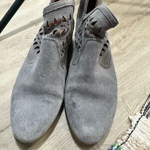 Stylish gray ankle booties with unique cutout design. Perfect blend of fashion and comfort.