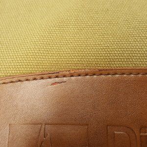 ** PLEASE NOTE THAT THIS BAG HAS SLIGHT IMPERFECTIONS/SCRATCHES IN THE LEATHER ABOVE THE WORD "DIRECT" AND ALONG TRIM AT TOP EDGE & A DEEPER SCRATCH ON TOP NEAR HANDLE) ALSO HAS THE WORDING "DIRECT ENERGY BUSINESS" EMBOSSED ON FRONT LEATHER PANEL.**  Cutter and Buck Legacy Collection. New with tags,Soft-Sided,  light green cotton canvas w/brown leather trim, soft-sided laptop/messenger bag with removable 17" laptop sleeve, shoulder strap, one large zippered interior pocket, two outside pockets under flap, "trolley strap" on back. Two buckle closure on front.