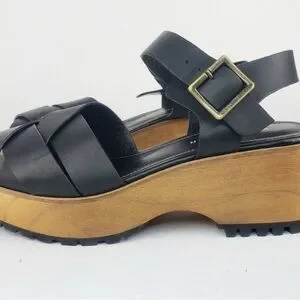 Anthropologie, Kelsey Dagger Webster Black Leather Platform, Clog Sandals