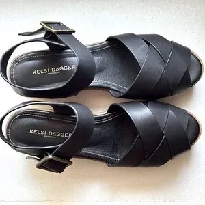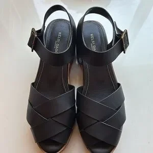 These Kelsey Dagger sandals are in like-new condition. Thick wooden heel is approximately 2-3/4”. Please notice minor flaws in photos.