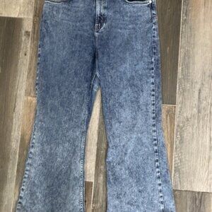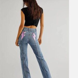 Free People We The Free Thunderbird Flare Jeans Lightening Bolt SIZE 35 X 26 HEM