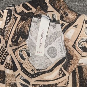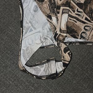 Eye-catching bodysuit with currency design. Long sleeves. Perfect for a bold look.