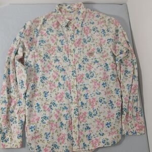 Vibrant floral shirt by Denim & Supply Ralph Lauren. Features pink, blue, and green flowers. Perfect for casual wear. This is a vintage Ralph Lauren shirt in excellent condition.