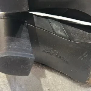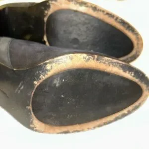 Women black leather. (Almost suede-like, not a shiny leather.) LL Bean leather boots size 8. Still in great condition. Non stick Pads attached to bottom for better non stick traction if wearing on ice or snow.