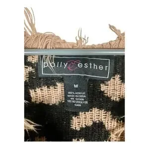 Polly & Esther Pullover Sweater Size M Leopard Print Fringe Cropped