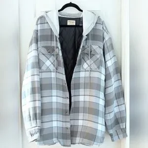 Wrangler Authentic Men's Lined Flannel Jacket Long Sleeve Hooded Gray Plaid, 3XL