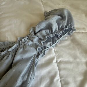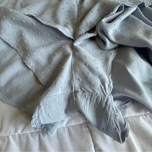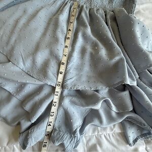 Harper & Ivy Light Blue Swiss Dot Ruffle Romper Size L