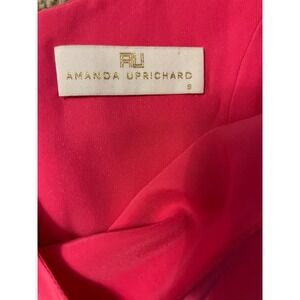 Chic pink dress with striped skirt. Sleeveless design. Perfect for casual outings.