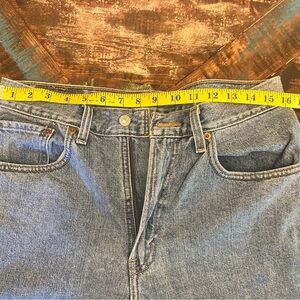 Stylish Levi's jean shorts. Light blue denim. Comfortable fit. Ideal for casual outings.
